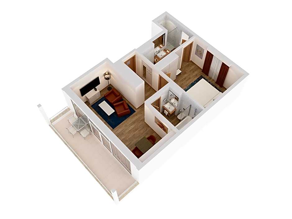 This fully furnished two-bedroom suite is located in one of the resort’s unique villa buildings. With a private balcony overlooking the sea, this suite features a living room with a seating area, a master bedroom with one king bed an private bathroom while the second room features two twin beds and its own bathroom with a shower or bath.